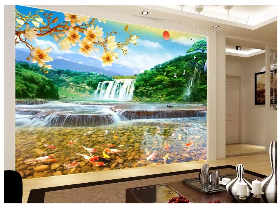 Natural 3d Wallpapers Chinese Style Water And Wealth Feng Shui Landscape Waterfall Wall Backgrounds Wallpaper Widescreen Desktop Wallpaper From
