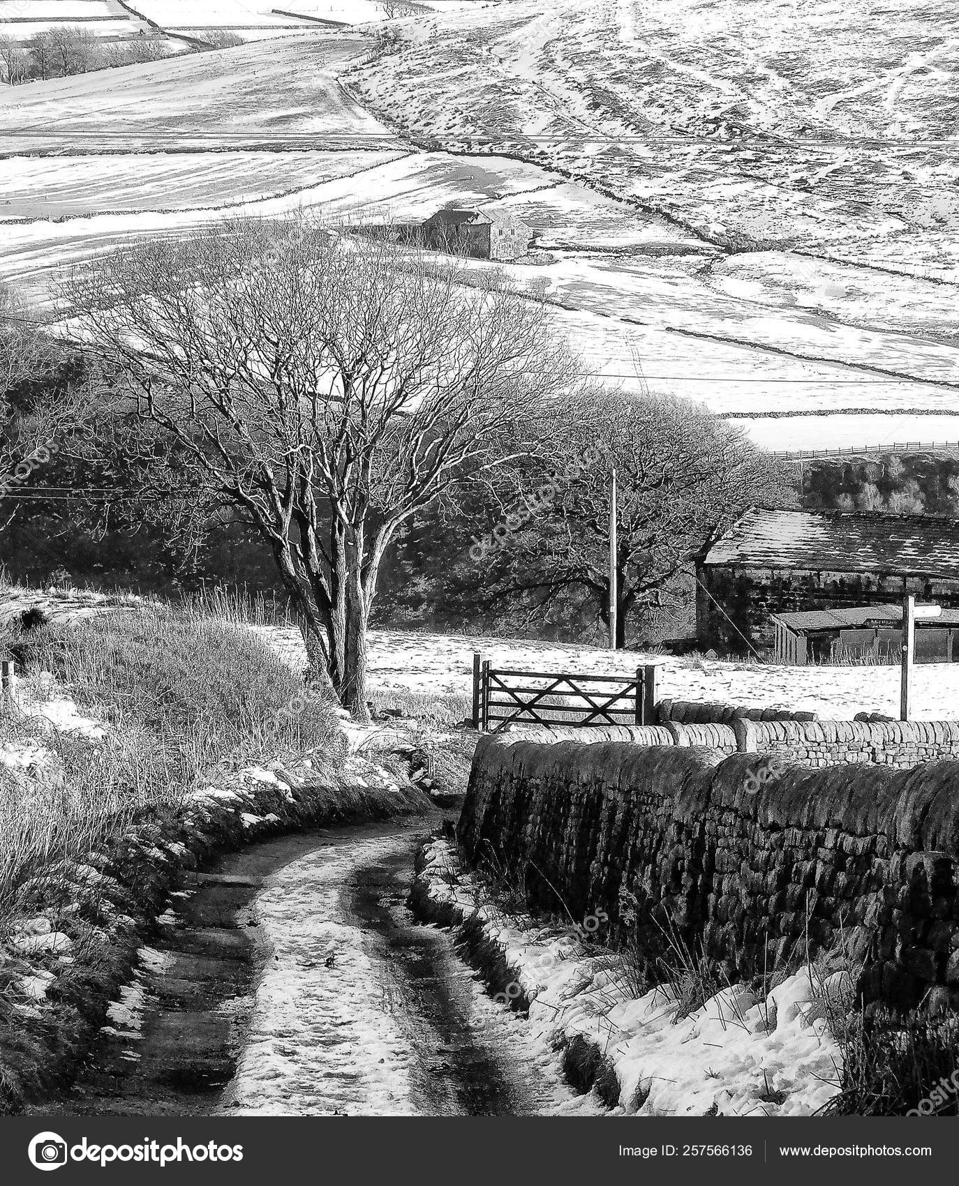 Snow Covered Yorkshire Landscape Country Lane Running