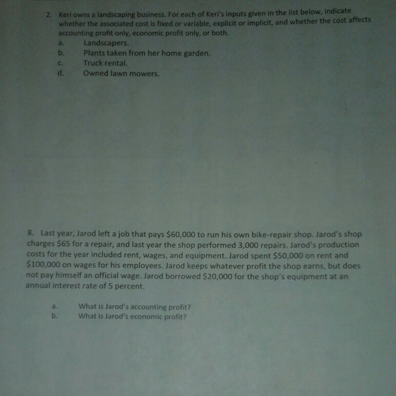 Solved 2 Keri Owns A Landscaping Business For Each Of K