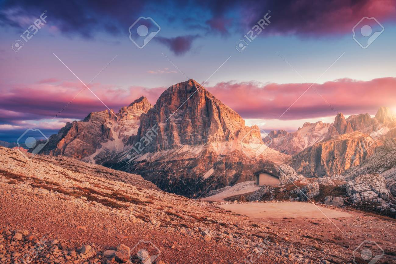Mountains At Sunset In Dolomites Italy Landscape With High