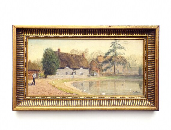 Ashmore Village Pond English Country Landscape Oil Painting Signed Framed Original Vintage Art