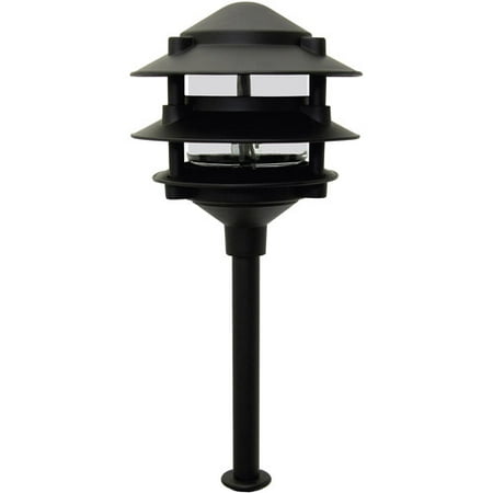 Moonrays 95725 Pagoda Style Low Voltage 11 Watt 12 Volt 3 Tier Metal Path Light Black Finish