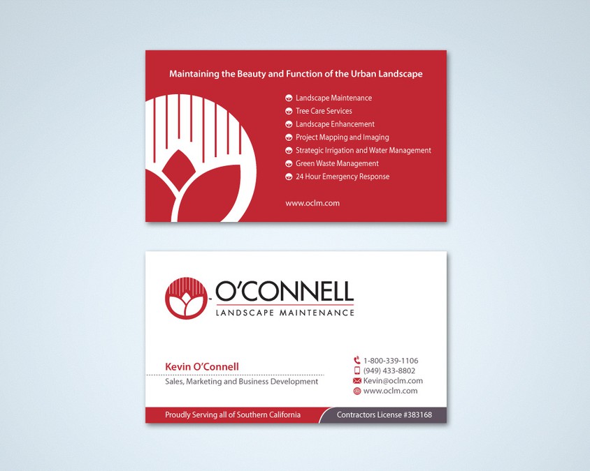 Business Card For O Connell Landscape Maintenance Business