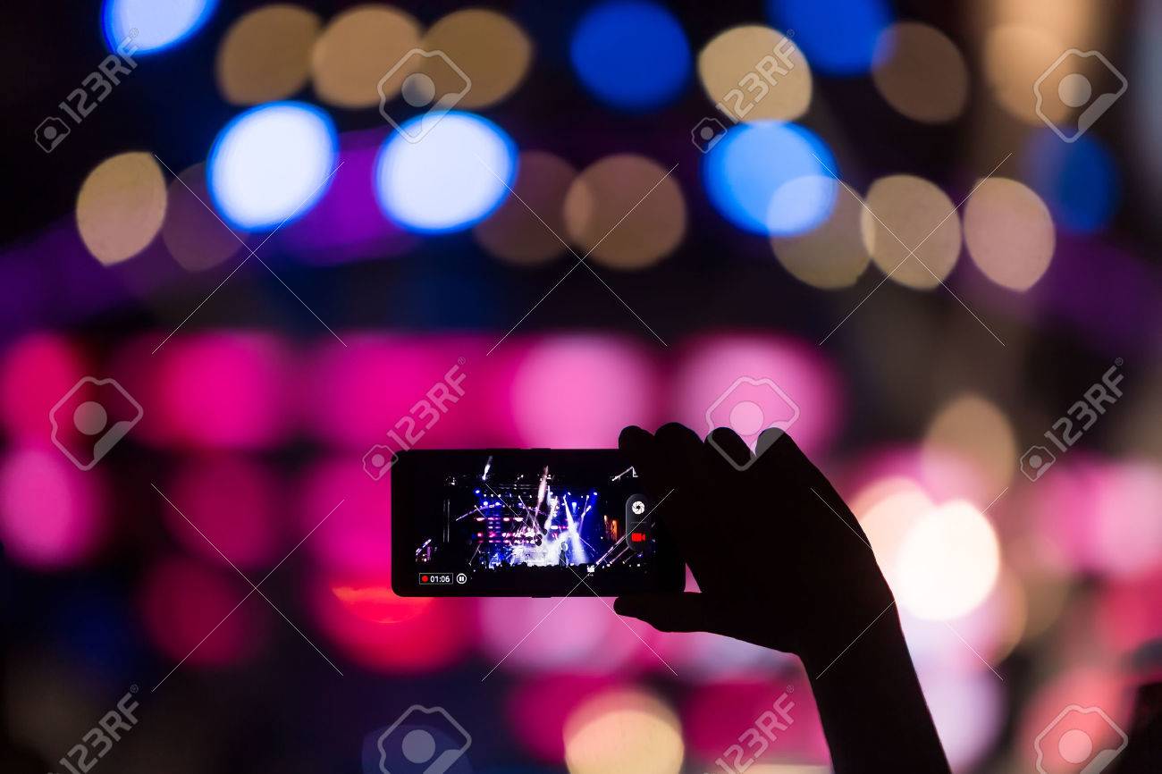 Hand With A Smartphone Records Live Music Festival Taking Photo
