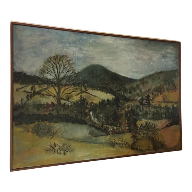 1950s Vintage Hudson Valley Landscape Oil On Canvas Painting