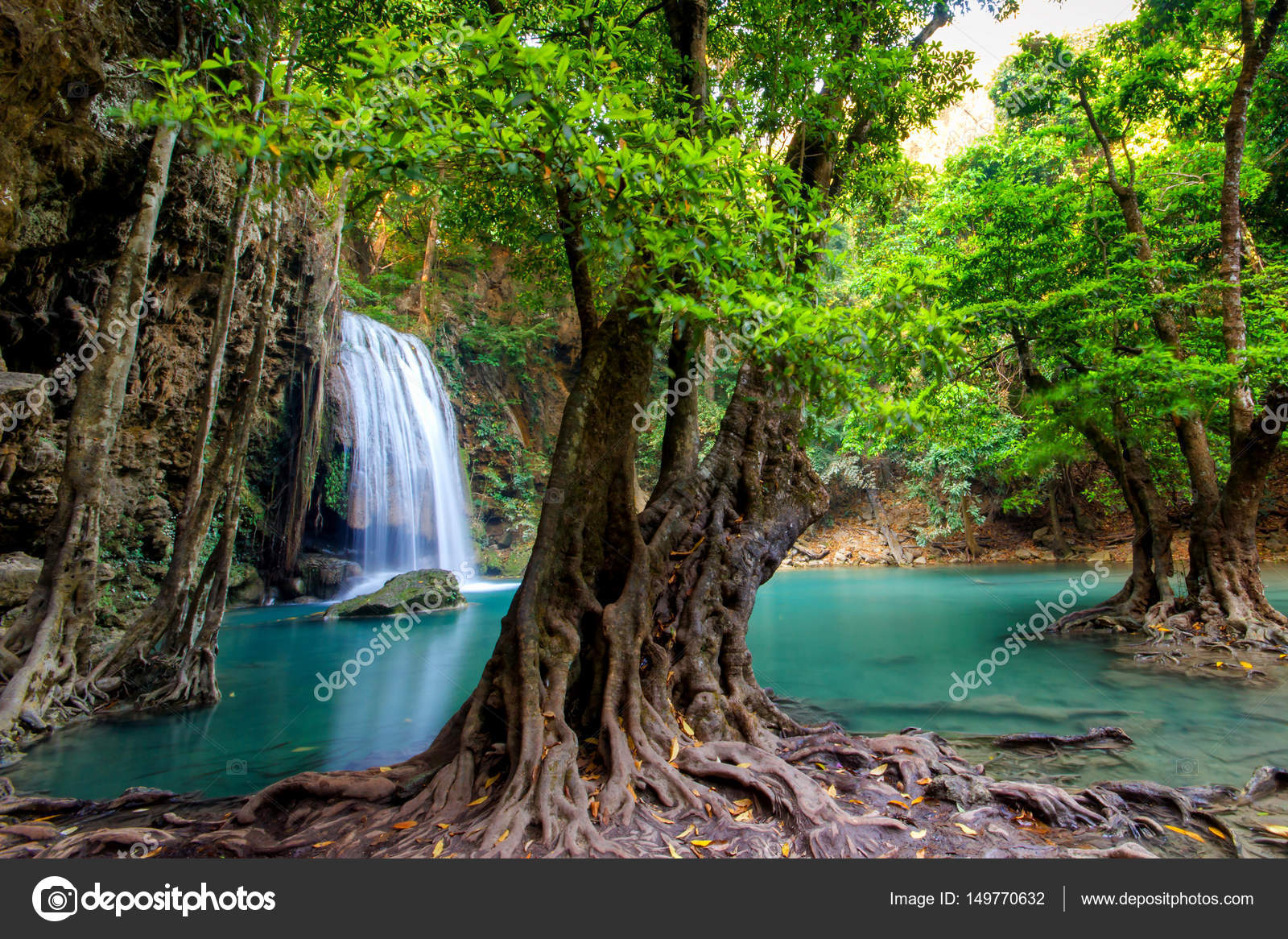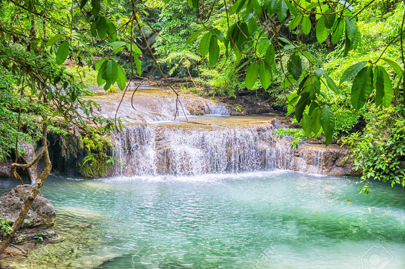 Jungle Landscape With Flowing Turquoise Water Of Erawan