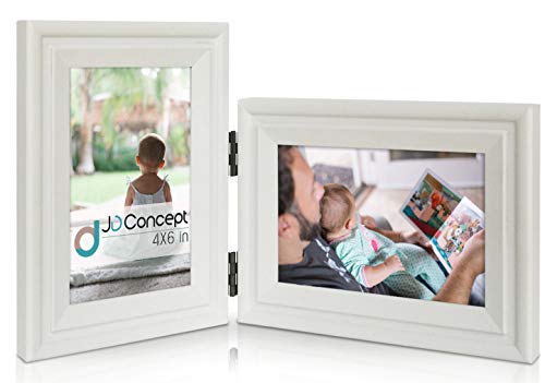 Jd Concept Vertical Horizontal Combo Double 4x6 White Wood Hinged Picture Frame Desk Top Or Wall Mounted Portrait And Landscape View